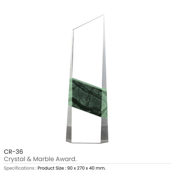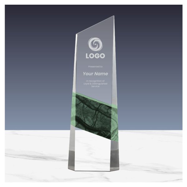 Vertical Shaped Crystal and Marble Awards in Fiber Hardboard Box with Branding Options.